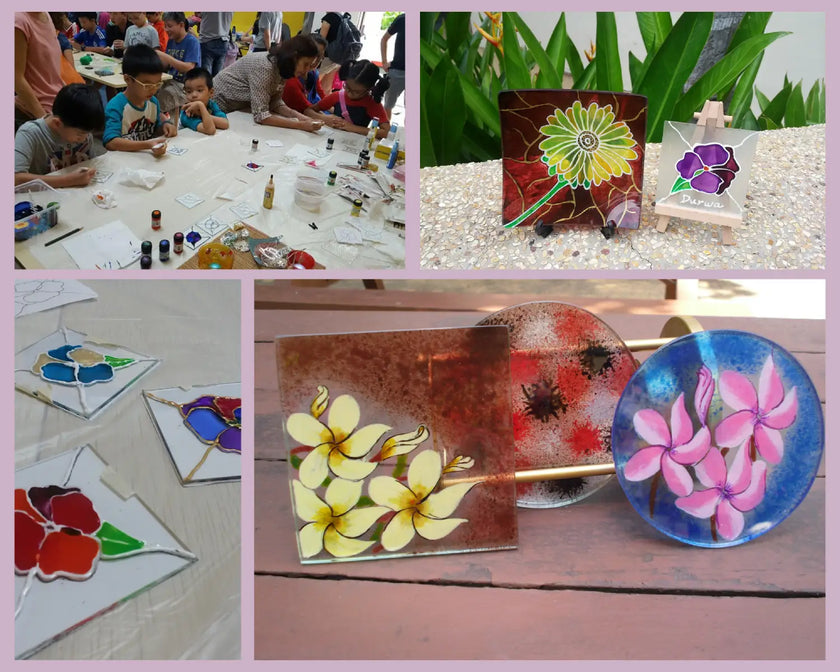 Immerse yourself in the world of glass painting with our workshop designed to awaken your creative spirit. Here, you'll discover the mesmerizing techniques behind transforming glass into captivating canvases.